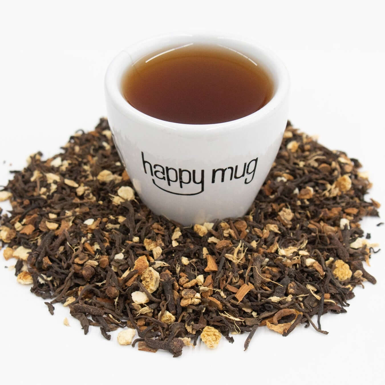 This aged dark black tea is paired with spices. It is a warming, comforting, flavorful tea to keep you cheerful on cold winter days.