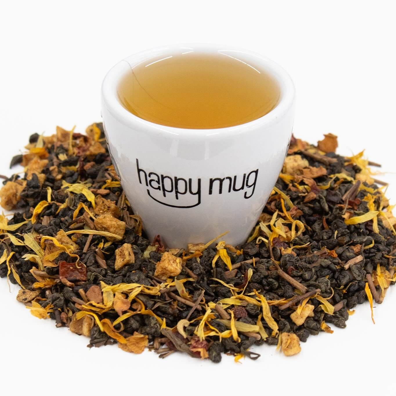 Ingredients: Gunpowder Green Tea, Hojicha, Apple Pieces, Cinnamon, Rose Hips, Natural Flavor, Marigold Petals, Rose Petals