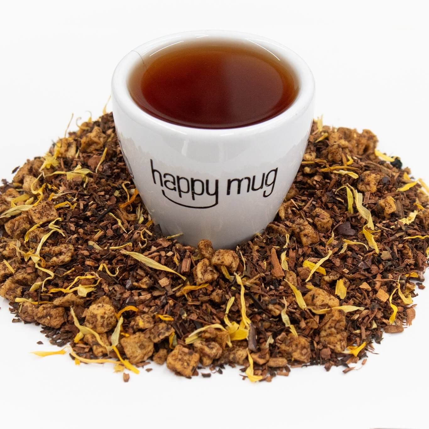 Ingredients: honeybush tea, apple pieces, cinnamon bark, cocoa nibs, natural banana flavor, natural chestnut flavor, marigold flowers