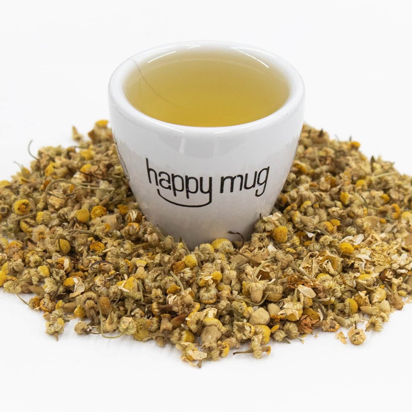 Chamomile is an herb grown commonly in England, and somewhat successfully in the United States, but the most prized chamomile comes out of Egypt. Chamomile looks like a daisy, with white petals and a yellow center. When dried and steeped as a tea, this herb is prized for its flavor, aroma, and soothing properties. This full flowered organic certified Egyptian Chamomile tea is soothingly aromatic, calmly smooth, and peacefully subtle with floral and fruity notes. Traditionally, it is prepared at bedtime with honey to induce sleepiness. But it is a fine tea to drink at any time that you wish to calm down, feel peaceful, and just escape the craziness of your day. Chamomile tea can also be blended with lavender or peppermint. The lavender further enhances a sleepy state, whereas the peppermint enhances a soothing digestive aid/after-dinner tea experience.