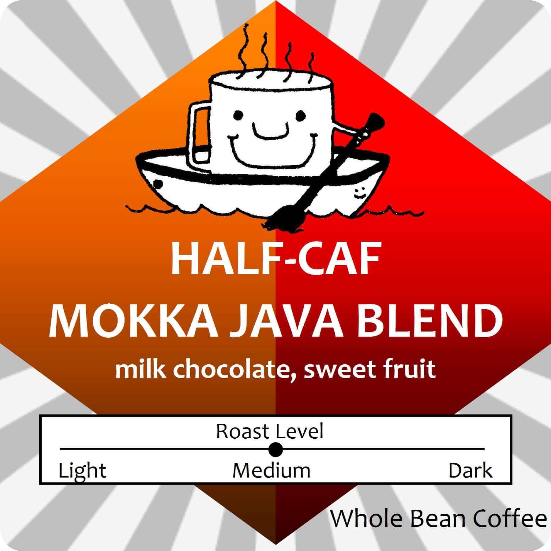 This version of Mokka-Java is made using Ethiopian coffee and Decaf Sumatra coffee, but the end result is similar: a dark smooth sweet fruity mug of coffee.
